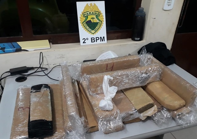Os suspeitos seguiram viagem até Cambará e por volta das 20h10min, naquela urbe, foram abordados; e com eles, em duas bolsas, foi encontrado vinte tabletes de maconha que pesaram 18kg de droga, além de uma porção de crack, pesando 40g, que renderia mais de 150 pedras do entorpecente, depois de fracionada.