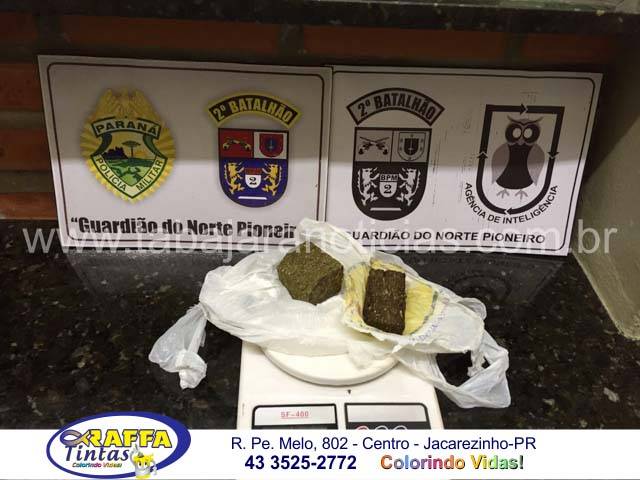 As equipes de inteligencia da Policia Militar com o apoio da VTR e Rotam realizaram uma campana em vigilância próximo a residencia quando por volta da 19 h da ultima sexta 08, avistaram uma Parati prata que parou próximo e aguardou até que o morador da residencia, chegou em um outro veiculo, entrou na residencia e foi acompanhado pelo individuo, que estava na Parati, o motorista da Parati saiu da residencia entrou no veiculo e seguiu sentido centro da cidade, uma equipe que o monitorava realizou a abordagem, em revista pessoal foi encontrado no bolso do motorista um envolucro contendo 45 gramas de maconha, ao ser questionado sobre onde teria havia pego o entorpecente o mesmo declarou que havia pego na residencia , os policiais retornaram até a residencia onde tudo começou e após comunicar ao morador da mesma sobre o motivo da abordagem realizaram buscas na residencias onde encontraram dentro da geladeira uma porção de maconha que após a pesagem correspondeu a quantia de 61 gramas, no lixo da cozinha encontraram mais duas embalagens plásticas com o cheiro característico da mesma droga, também foi encontrado a quantia de R$ 300,00 em dinheiro, diante dos fatos foi dado voz de prisão a, morador da residencia, em seguida foi encaminhado a delegacia de Policia juntamente com o motorista da Parati, onde foram entregues as autoridades de plantão