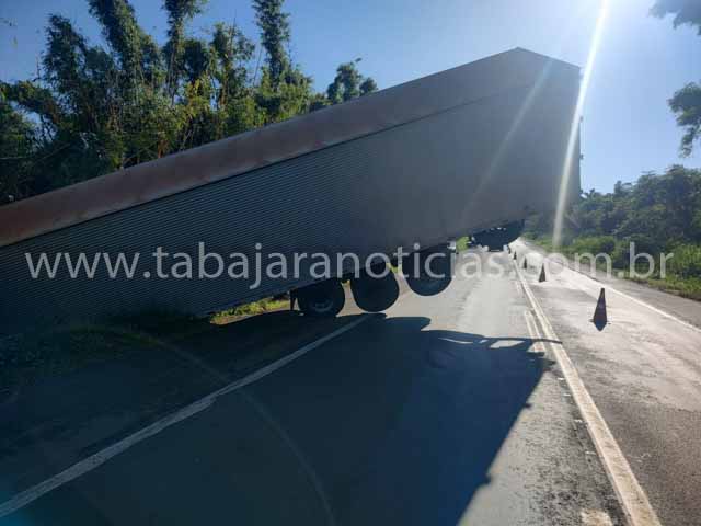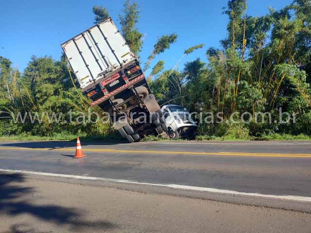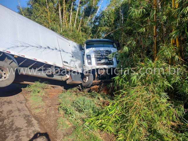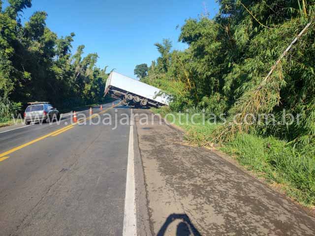 Uma carreta saiu da pista na madrugada desta quinta-feira (30), na altura do quilômetro 32 da BR-153, entre Santo Antônio da Platina e Jacarezinho, no norte pioneiro do Paraná.