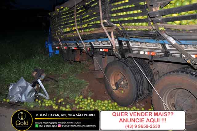 O acidente aconteceu por volta das 03:30 da madrugada deste domingo 06, de acordo com as informações o caminhão carregado com laranjas seguia sentido Jacarezinho com destino a Curitiba, quando no local próximo a BBA, um Fiat Mob que seguia em sentido contrário, não se sabe o motivo o motorista invadiu a pista contrária e colidiu de frente com o caminhão.