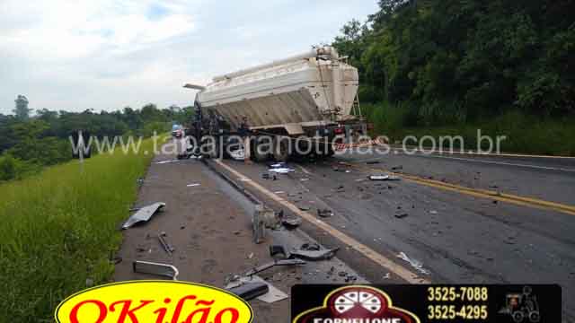 De acordo com as informações um caminhão e uma carreta se chocaram de frente, com o impacto a carreta saiu da pista e acabou tombando em seguida, no outro caminhão de transporte de ração, o motorista teve morte instantânea, o condutor da carreta que tombou teve ferimentos leves, não se sabe o que causou o acidente, as equipes das Policias Militar, Civil e Rodoviária Federal estiveram no local e tomaram as providencias, a rodovia ficou interditada nos dois sentidos, as causas do acidente serão investigadas.