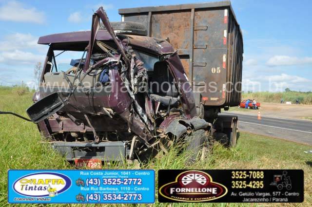 O acidente aconteceu por volta das 9:20, desta segunda 07, próximo a Dalon, e envolveu um Caminhão Placas de Jacarezinho e outro placas de Missão Velha Ceará, segundo relatou o motorista do Ceará que estava carregado com três cavalos, ele seguia logo atras do caminhão de Jacarezinho, que saiu para o acostamento e entrou para cruzar a pista, para entrar no ferro velho e acabou entrando em sua frente.
