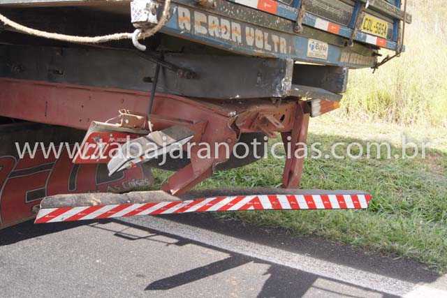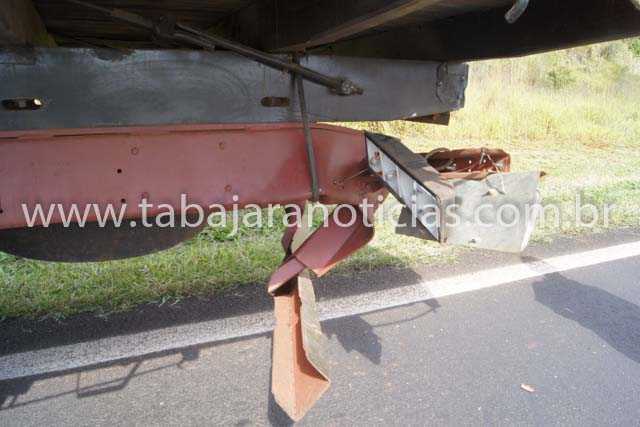 Com o impacto a frente do VW ficou destruída assim como a traseira do MB que teve até o chassi entortado e a caga de madeira chegou a deslocar quase meio metro para trás e por muito pouco não caiu na pista