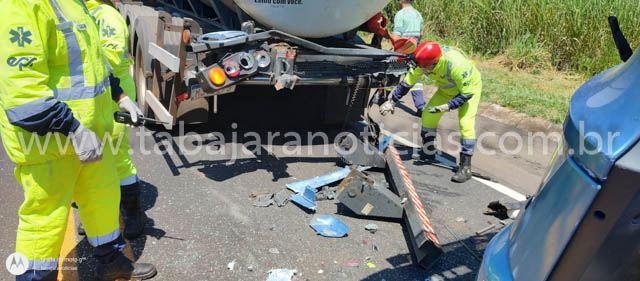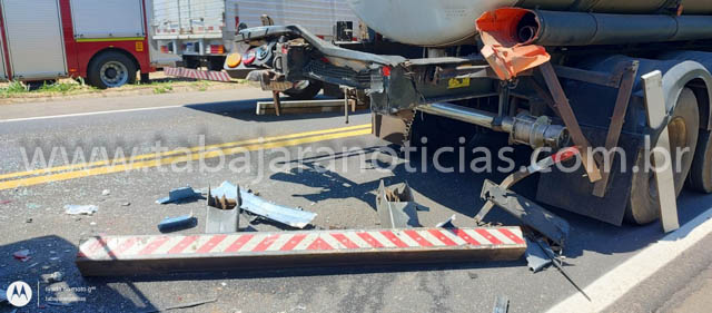 O impacto da colisão foi tão forte que destruiu a parte traseira do chassi da carreta-tanque, que estava carregada com fertilizante  e causou danos severos à cabine e ao chassi da carreta bitrem. O motorista do segundo veículo ficou preso entre as ferragens e precisou ser resgatado pelo Corpo de Bombeiros, que realizou o desencarceramento e o encaminhou ao pronto-socorro com ferimentos moderados.