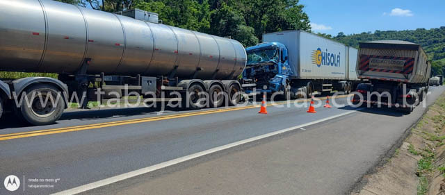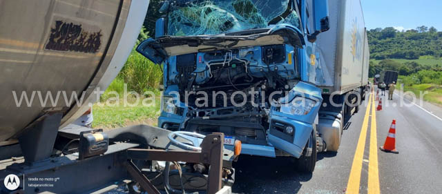 Acidente entre duas carretas deixa motorista ferido no km 17 da BR 153 em Jacarezinho.