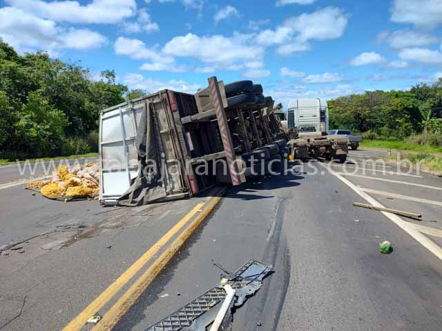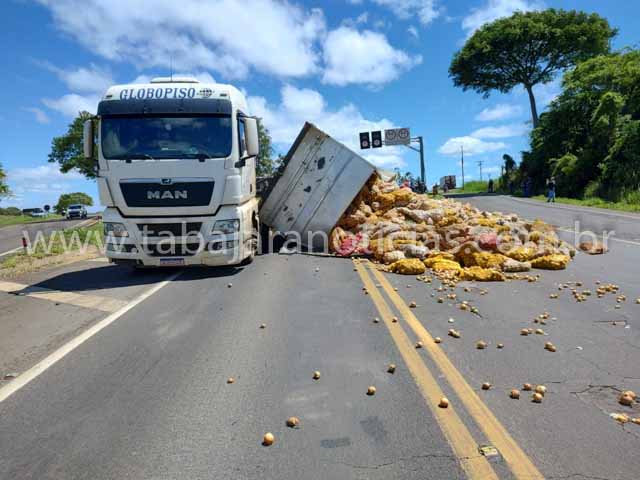 Com o impacto a carreta carregada com cebola acabou tombando sobre a rodovia e por muito pouco não tombou em cima de uma motocicleta que seguia sentido Jacarezinho, Baru que conduzia a motocicleta relatou ao Tabajara Noticias que viu todo o acidente e por muito pouco não foi atingido pela carreta, por sorte ele conseguiu desviar para a direita e ainda foi atingido por cebolas que se espalharam pela rodovia, a BR ficou interditada nos dois sentidos e o transito foi desviado pelas alças de aceso a Vila Rural e a PR 431.