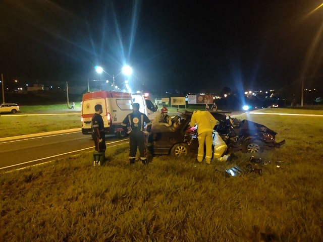 Um grave acidente entre um Gol e um Monza na noite desta sexta-feira (5), pouco depois das 22h, deixou um morto e três feridos no trevo de acesso a Santo Antônio da Platina pela avenida José Palma Rennó.