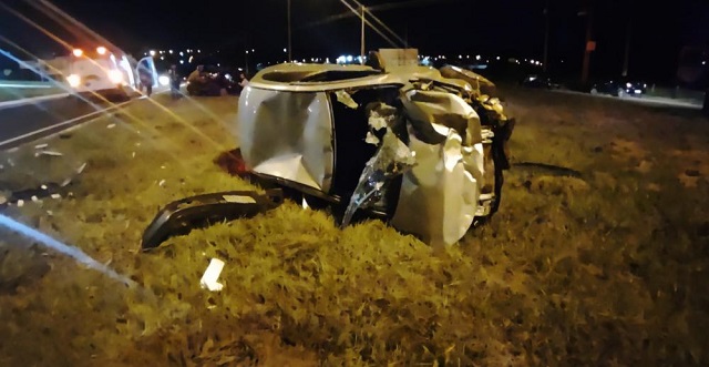 Veículos colidiram no trevo de acesso à cidade na noite de sexta-feira (5)