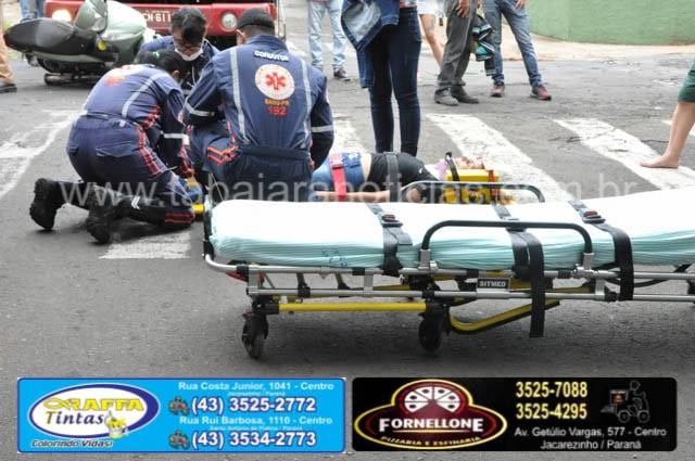 O acidente aconteceu no cruzamento das ruas Costa Junior com a rua Quintino Bocaiuva, na esquina da Praça São Benedito, segundo informações u caminhão Placas de Quatiguá, descia pela Quintino Bocaiuva quando não visualizou a motocicleta Honda Biz que seguia pela Costa Junior que é preferencial, e acabou colidindo com a moto.