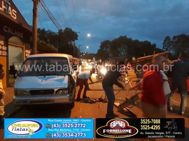Um acidente envolvendo um Siena, uma Van e uma carroça aconteceu na Avenida Marciano de Barros no Jardim São Luis em Jacarezinho.