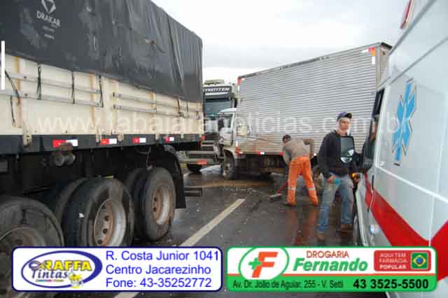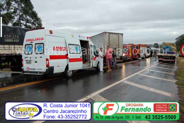 Segundo relatou o motorista do caminhão de Siqueira Campos ele seguia sentido Jacarezinho, quando ultrapassava uma carreta, ao acabar a terceira faixa, a carreta ao voltar para a faixa normal teria fechado o caminhão que foi obrigado a entrar na contra mão, com a manobra acabou batendo no retrovisor da Saveiro, em seguida bateu na lateral da carroceria da primeira carreta e finalmente colidiu de frente com a segunda carreta.