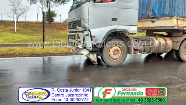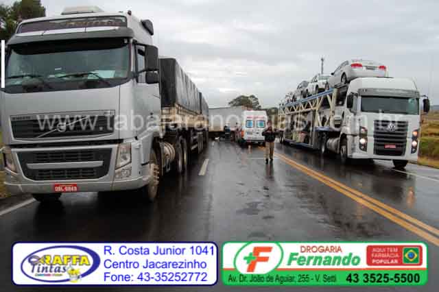O acidente aconteceu próximo a Supergasbras, e envolveu duas caretas placas de Guarantã do Norte MT, um caminhão VW, placas de Siqueira Campos e uma Saveiro placas de Jacarezinho.