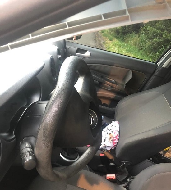 A vítima foi retirada do carro com escoriações na cabeça e no tórax, além de fraturas nas pernas. Ela foi encaminhada ao Pronto-Socorro de Santo Antônio da Platina.