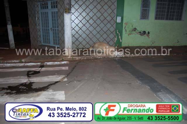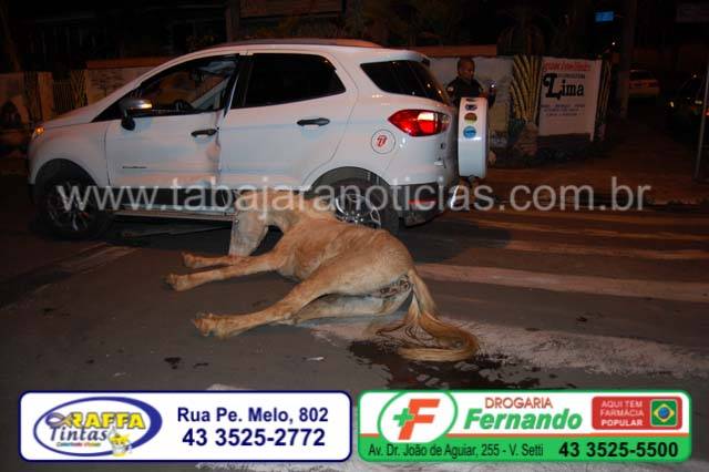 Por volta das 23 hs desta quarta 31, um acidente tirou a vida de uma égua na rua paraná no centro de Jacarezinho.