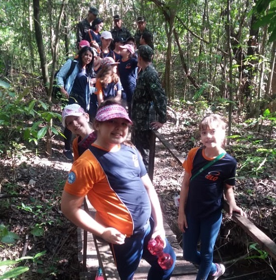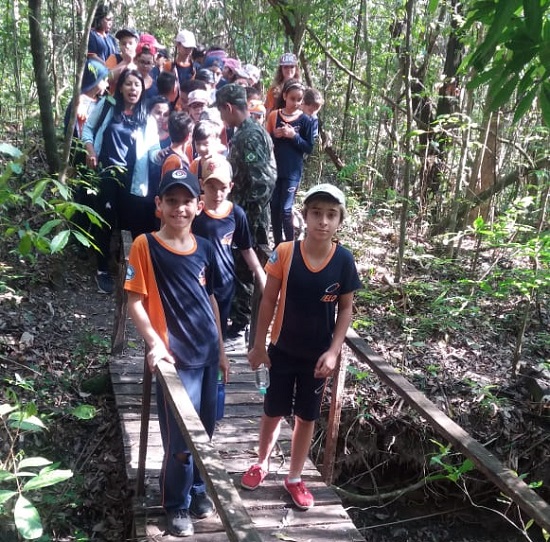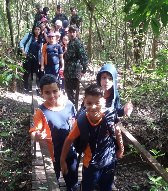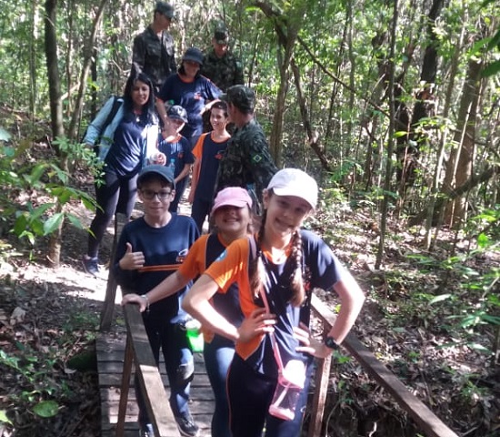 Ambiental do Paraná ( IAP) de Jacarezinho. A atividade teve como objetivo colocar em prática as atividades relacionadas ao conteúdo apresentado no material didático na disciplina de Geografia, promover o conhecimento sobre a diversidade de espécies nativas encontrada na Região Sim. Os alunos foram acompanhados pelas professoras Silvia Rédua, Daiane, Rosania e contaram com a participação dos atiradores Rédua, Ruiz, Evandro, Garcia e Rhoden do Tiro de Guerra 05-007 que auxiliaram os alunos em todo percurso.