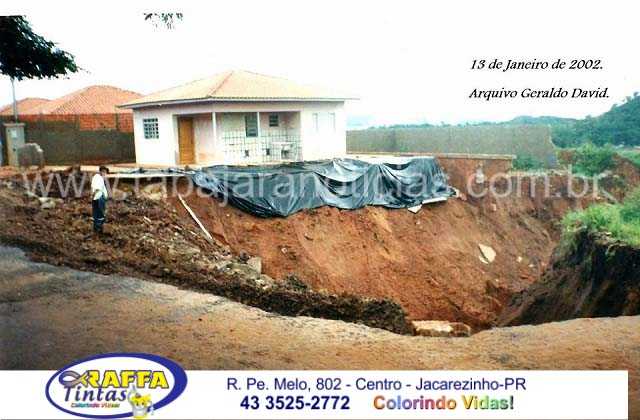 O morador Sidnei Francisquinho, 45 anos, relatou que, o local por não ter uma boa qualidade de solo e não possuir um escoamento de água apropriado, em Janeiro de 2002, coincidentemente juntamente com seu vizinho Geraldo S. David Filho 49 anos, passaram por uma situação desesperadora, devido à quantidade de chuvas que sucederam, naquele mês. Percebendo que uma pequena erosão vinha tomando uma extensão maior, ele como também outros moradores procuram o poder público para que se tomassem providências para evitar danos maiores, mas nada foi feito e o pior aconteceu, uma parte do terreno da chácara do seu João da Silva (In Memoriam), sua casa e a do seu vizinho Geraldo David, quase foram engolidas pela erosão.