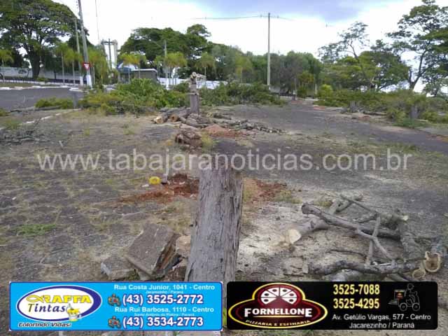 No final da tarde desta quinta 14, após várias reclamações de nossos internautas que passaram pelo local reclamando sobre o corte e erradicação de todas as arvores da praça do cemitério de Jacarezinho, nosso repórter esteve no local onde registrou com indignação que as arvores estão sendo erradicadas pelos funcionários da prefeitura.