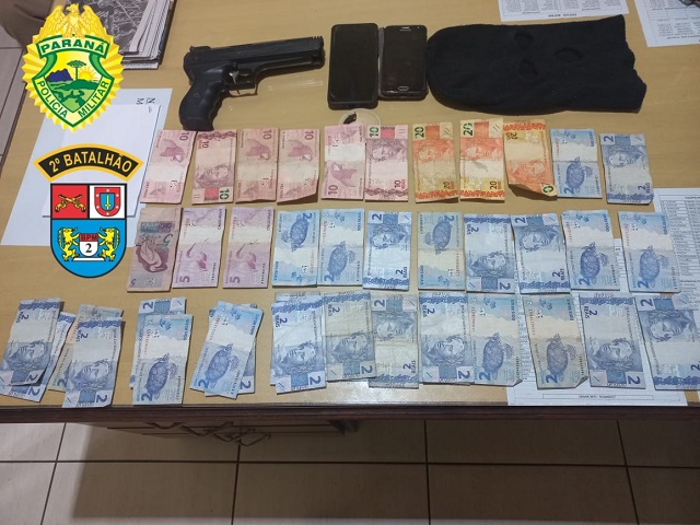O assaltante foi detido na rua Tiradentes e com ele foram encontrados uma touca balaclava, o simulacro de arma de fogo, R$197 em dinheiro e dois celulares, frutos do roubo. O proprietário do comércio confirmou que havia sido vítima do assalto.