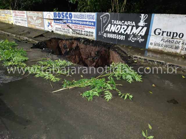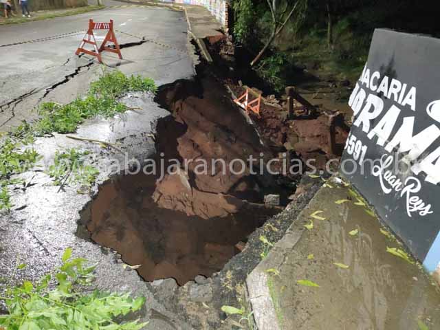 Atenção moradores de Jacarezinho: a ponte da Vila Setti (Avenida Evaristo Anghinoni – Marginal), que liga os Bairros Aeroporto, Jardim São Luís, Panorama e outros com o centro da cidade de Jacarezinho, está interditada em virtude de uma cratera que surgiu após a última chuva.