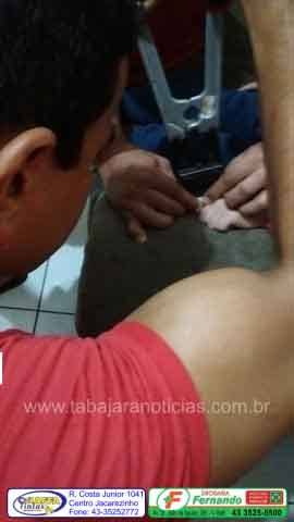 O fato aconteceu no inicio da noite de sábado 13, a criança é moradora da vizinha cidade de Ribeirão Claro, um menino de cinco anos que em uma brincadeira acabou colocando uma arruela de ferro no dedo e não conseguiu mais tira-la.