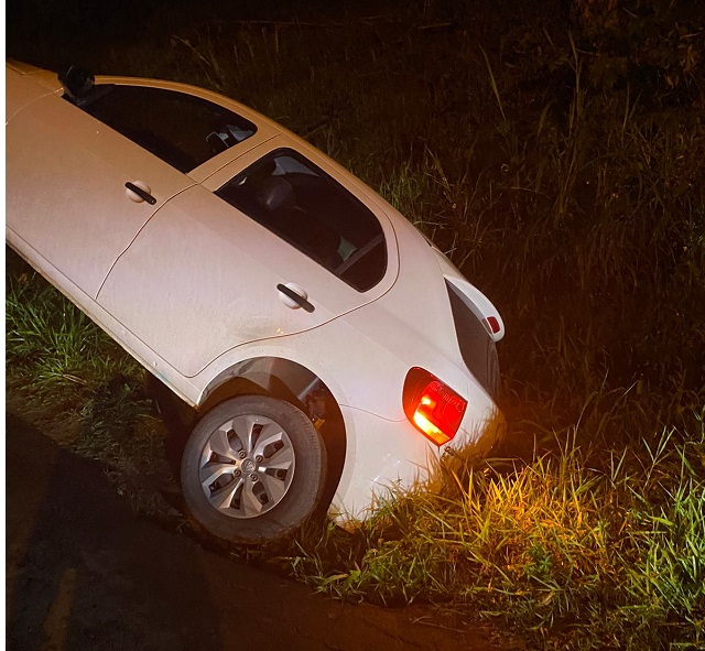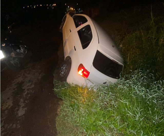 Um carro acabou caindo em um buraco sem sinalização próximo a Vila São Pedro em Jacarezinho.