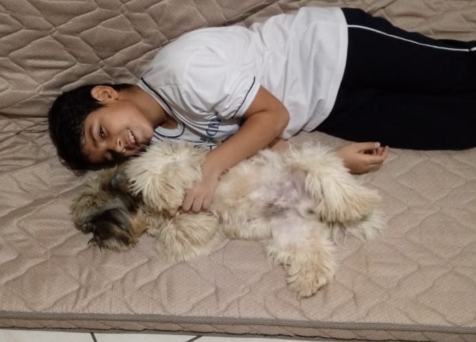 Responde pelo nome de Aaron, é da raça shih tzu.