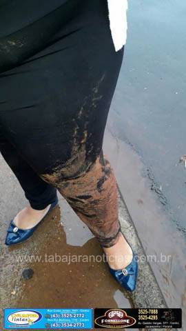 O fato aconteceu na rua Projetada B , enfrente Casa de Velar José Carlos Kalan , no Bairro Aeroporto, mulher teve que retornar a sua residencia para trocar de roupa e acabou chegando atrasada no serviço e ainda com escoriações e dores na perna.