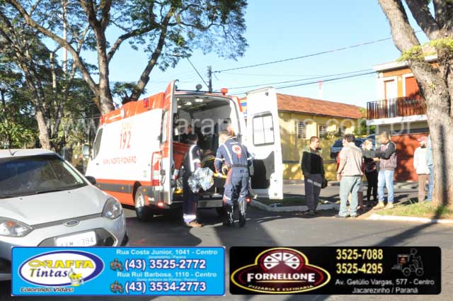 Um acidente ocorrido por volta das 08:30, desta terça 10, envolvendo uma motocicleta Honda CB 300, e um VW Gol ambos placas de Jacarezinho, deixou duas pessoas feridas no centro de Jacarezinho.