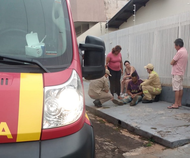 O Corpo de Bombeiros foi acionado, mas o motociclista não se feriu com gravidade. O motorista dom carro não se feriu.