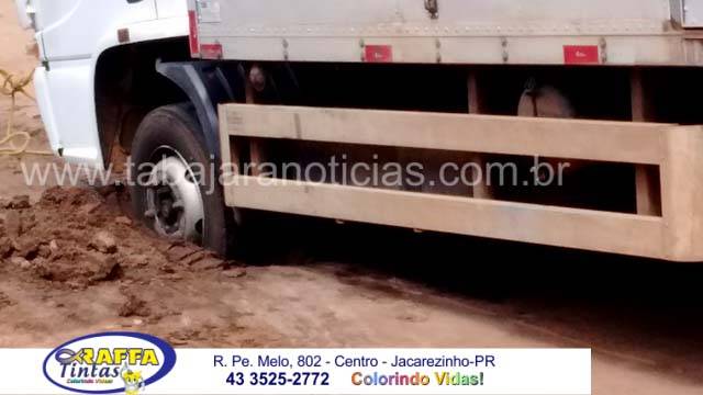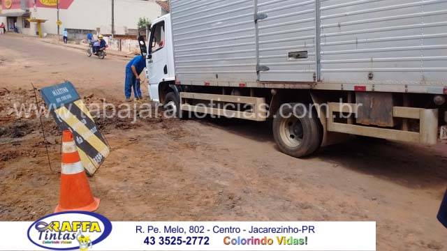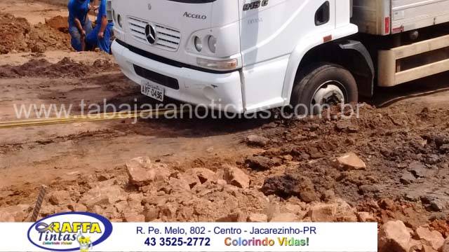 No inicio da tarde desta terça 29, uma equipe que presta serviços a Sanepar realizava obras na rede de esgotos na rua Tancredo Neves no cruzamento com a José Pavan na Vila São Pedro e ao acabarem de aterrar a valeta na rua um caminhão que realizava entregas na cidade acabou atolando as rodas da frente na valeta, uma fila com vários carros inclusive o nosso se formou e alguns deram a volta e seguiram por outra rua para não esperar a retirada do caminhão