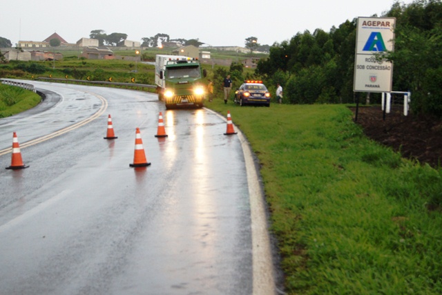 A pista foi interditada por aproximadamente meia hora para a retirada do caminhão que estava carregado de iogurte