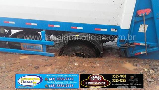 Na manhã desta segunda 02, uma moradora flagrou quando o caminhão de coleta de lixo realizava o trabalho pela rua Padre Hugo na região do Aeroporto, e acabou ficando atolado no meio da rua.