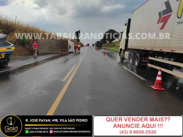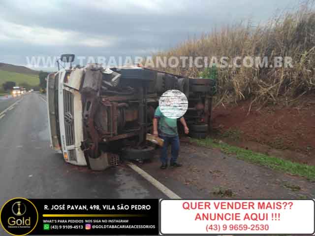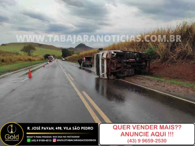 por volta das 16:40, desta terça 14, um caminhão tombou no km 26 da BR 153 em Jacarezinho.