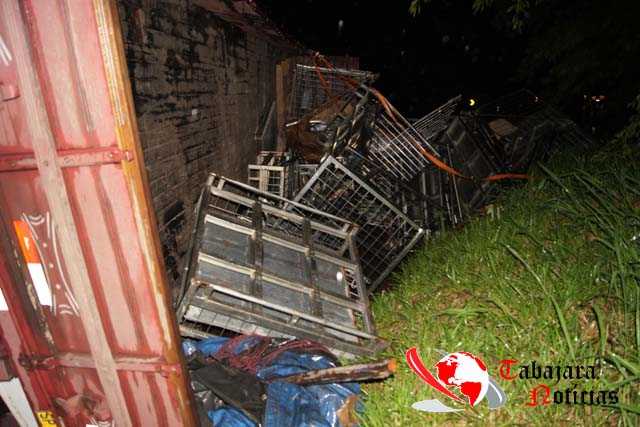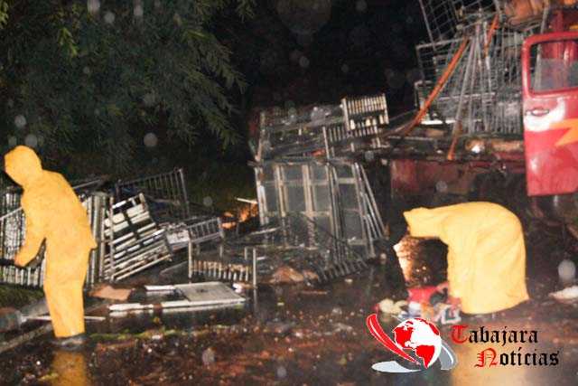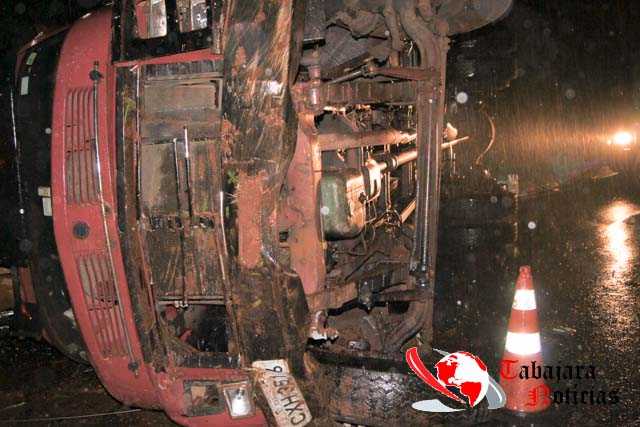 Segundo informações o caminhão com placas da cidade de Cafelândia seguia sentido Jacarezinho carregado com grades de ferro quando devido a forte chuva que caia na hora acabou perdendo o controle da direção rodou na pista batendo no barranco tombando e seguida