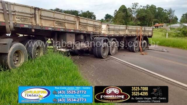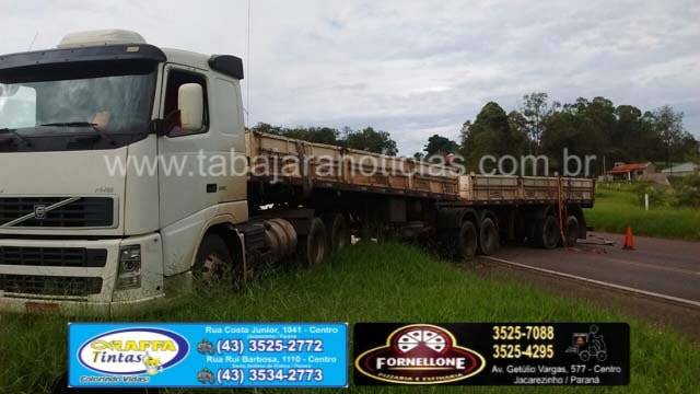 Por volta das 09:20 hs desta quinta 18, um acidente envolvendo uma carreta Volvo bi articulada placas de Marilia SP, aconteceu no trevo de acesso a Vila Silas da PR 431, em Jacarezinho.