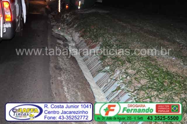 Segundo relatou o motorista da carreta placas de Carambeí, ele seguia sentido Jacarezinho, quando no local uma motocicleta o ultrapassou e não se sabe o motivo acabou entrando em sua frente, para não colidir com a moto o motorista desviou para a direita, com a manobra a carreta acabou caindo na canaleta causando o tombamento.