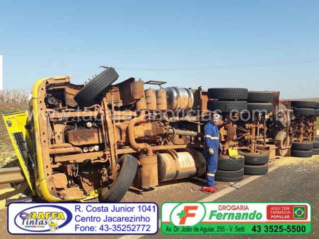 Na manhã desta quinta-feira, 24/08/2017, por volta das 07h30min, a equipe da Policia Rodoviária Estadual foi acionada para atender uma ocorrência de acidente de transito envolvendo um caminhão Volvo FH 6X2T 400 da cor amarela pela Rodovia Raposo Tavares, próximo a Salto Grande.
