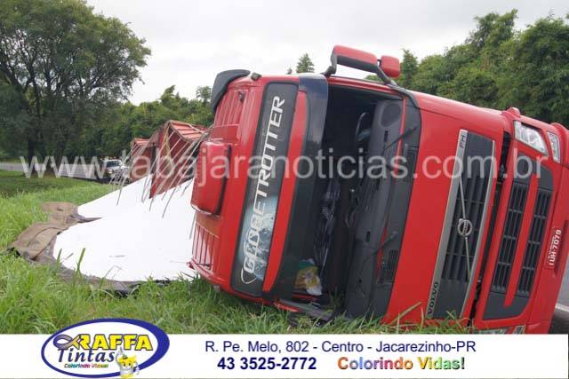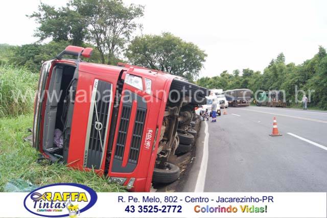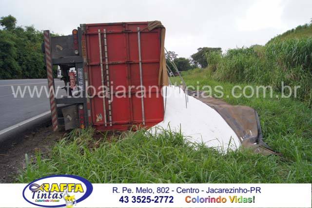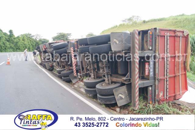 Por volta das 14:40 da tarde deste domingo 21, uma carreta placas de São José do Ouro RS, carregada de adubo, seguia de Santa Catarina com destina ao estado de Rondônia, mas ao chegar no km 38 da BR 153 no final da serra do Palmital em Santo Antonio da Platina, ao fazer uma curva os pneus da ultima carreta caíram na canaleta e acabou tombando levando junto o resto do conjunto
