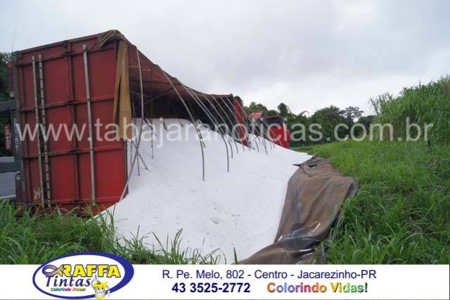 As equipes da Policia Rodoviária Federal estiveram no local e com o apoio das equipes de inspeção e guincho da Econorte realizaram a sinalização e orientação do transito, a retirada da carreta será demorada pois devera ser feito primeiro o transbordo da carga