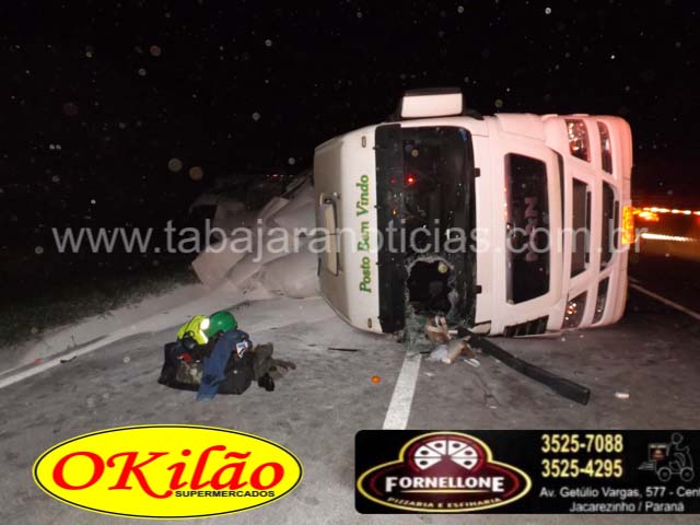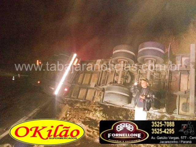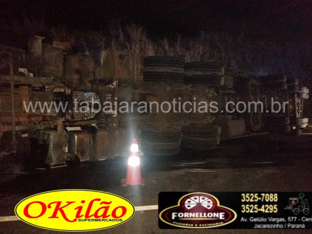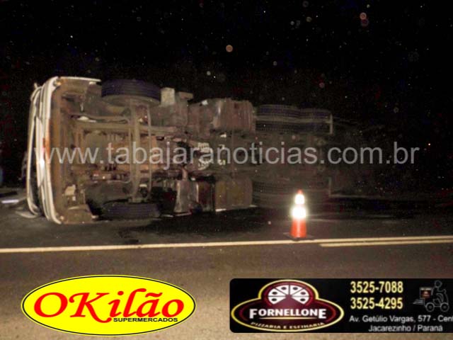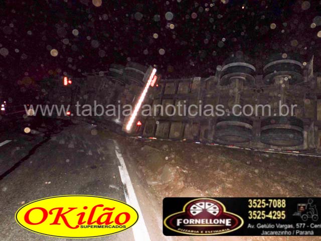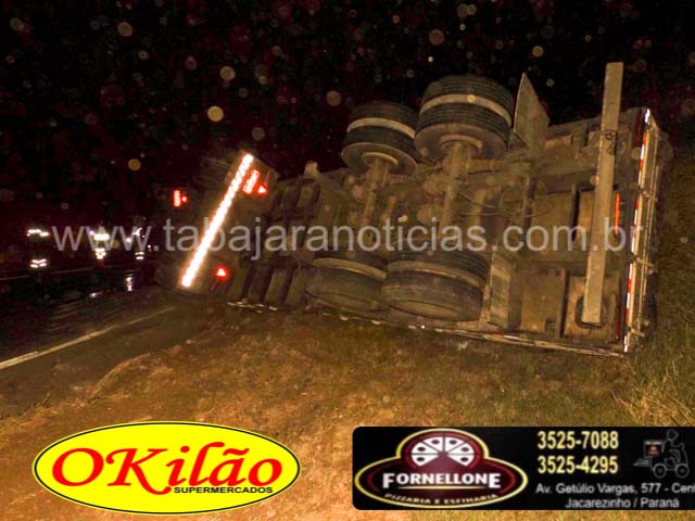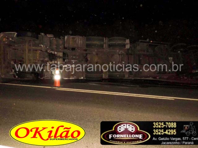 Por volta das 21:40 deste sábado 20, uma carreta tombou no km 10 da BR 153 entre Jacarezinho e Ourinhos.