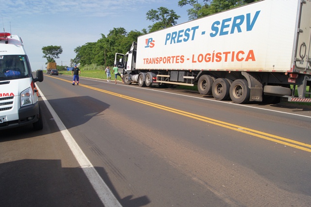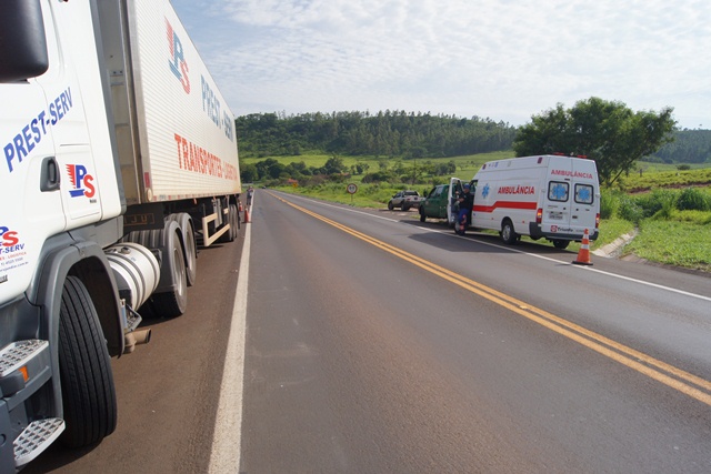 Na manhã deste sábado 27 um acidente envolvendo uma careta Scania e uma pick up Fiat Strada aconteceu no KM 17 + 800 mts da rodovia BR 153 quase e m frente ao Batalhão da Policia Militar