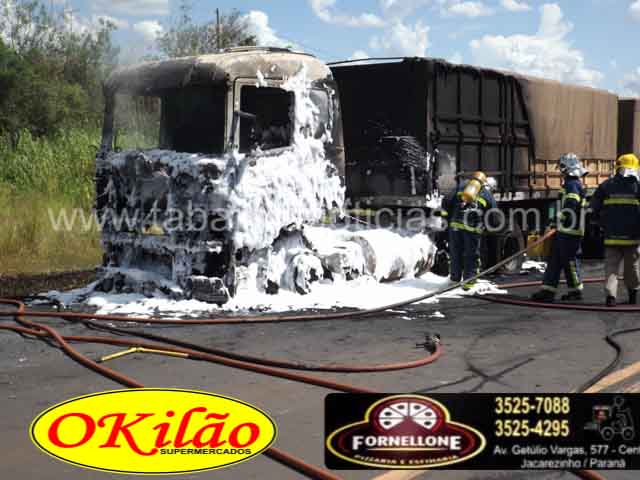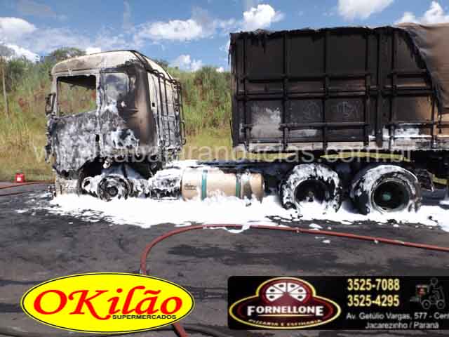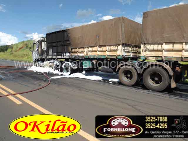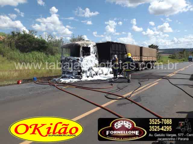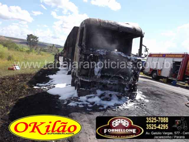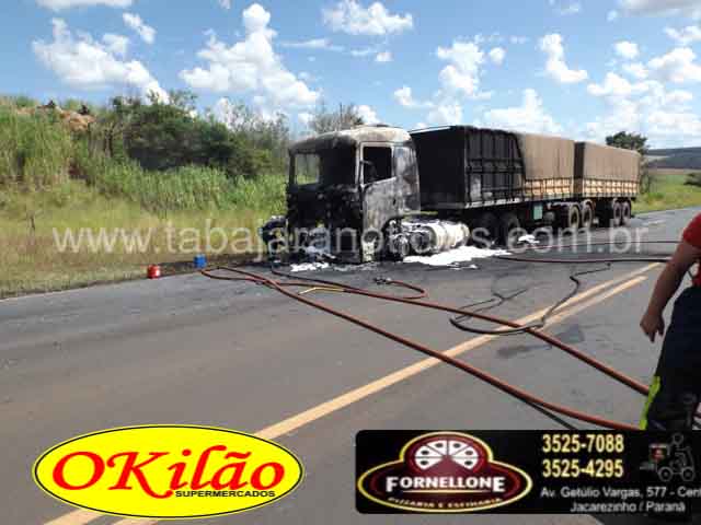 A carreta placas de Santa Catarina, seguia sentido Jacarezinho, quando no local segundo o motorista começou a sair fumaça próximo a alavanca do cambio, ele imediatamente tentou sair para o acostamento, mas o veiculo já começou a pegar fogo.