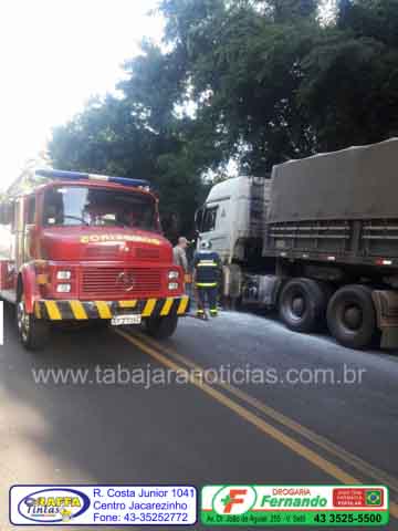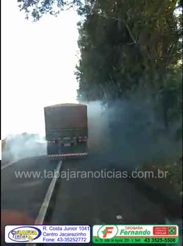 Ao tentar seguir viagem o caminhão começou a soltar muita fumaça, no km 38 da BR 153, começou a pegar fogo, os socorristas, Jonathan e Kleber e o motorista Anderson, do guincho da Econorte, com o auxilio do motorista e ajudante de um caminhão da Super Gás Brás de Jacarezinho, usando quatro extintores conseguiram evitar que as chamas aumentassem e exinguiram o incêndio.