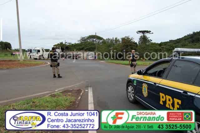 Segundo informações, a carreta havia saído do posto de combustíveis e ao fazer o contorno acabou tombando no trevo de acesso a PR 092. o motorista de 30 anos teve ferimentos leves, foi encaminhado ao Pronto Socorro pelos Bombeiros, sem gravidade.