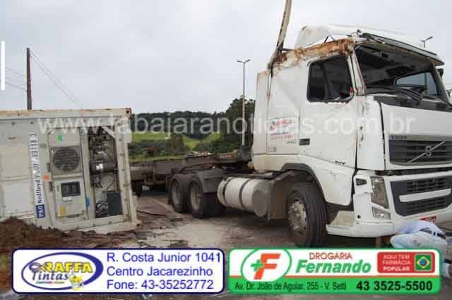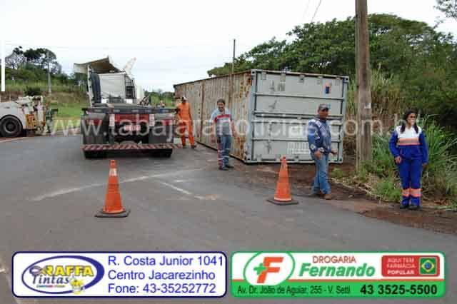 As equipes da Econorte, Samu e Policia Rodoviária Federal estiveram no local e tomaram as providencias, estamos no aguardo da retirada do contêiner, assim que for retirado voltaremos a informar sobre a situação.