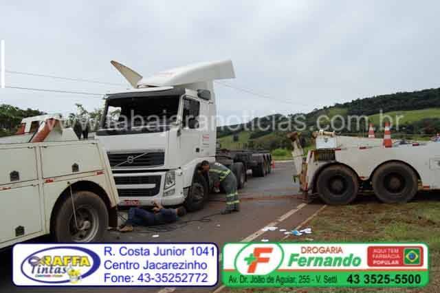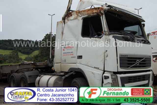 Uma carreta placas de Simões Filho BA, carregada com carne de frango, acabou tombando no km 39 da BR 153 em Santo Antonio da Platina.