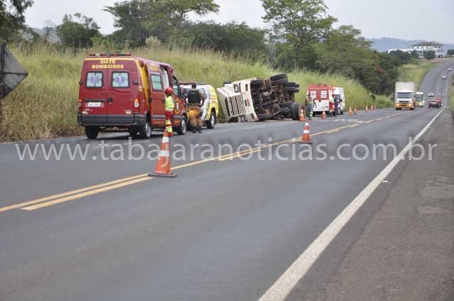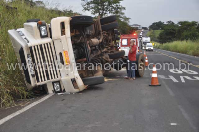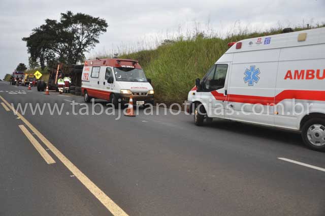 De acordo com as informações, a carreta placas de Céu Azul PR, seguia sentido Jacarezinho a Santo Antonio, quando no km 20, o motorista teria sofrido um mal súbito, acabou caindo na canaleta e tombando em seguida.