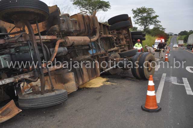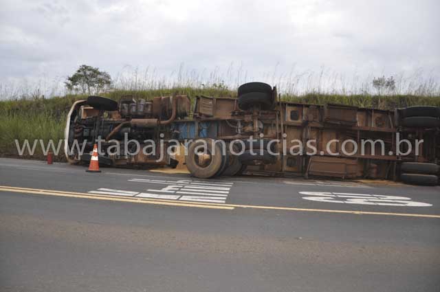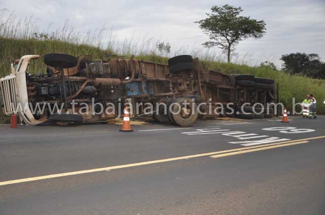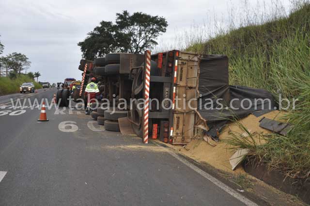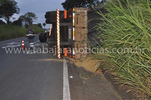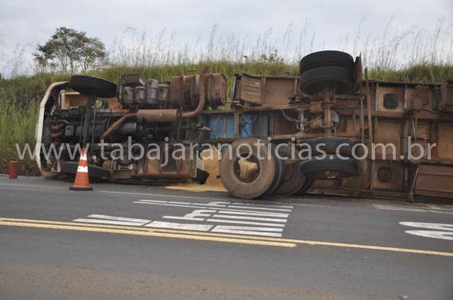Por volta das 16:40 desta quinta feira 23, uma carreta carregada com farelo de soja, tombou na BR 153 em Jacarezinho.