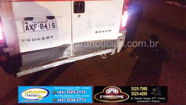 O acidente aconteceu por volta das 05:00 hs desta sexta 23, segundo informações a ambulância seguia levando um paciente de Jacarezinho para o Hospital Universitário de Londrina, segundo informações a viatura do Samu reduziu a velocidade para passar na lombada e o condutor do Gol que seguia logo atras, não percebeu e acabou colidindo na traseira da ambulância.