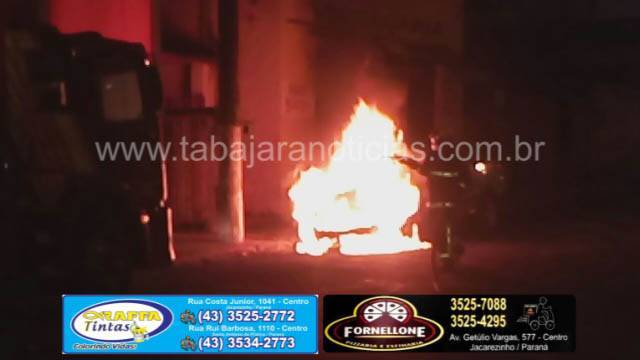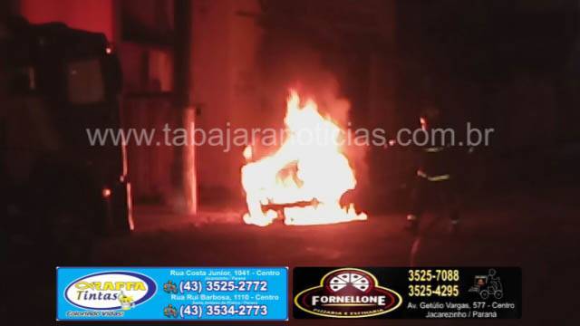 Carro estacionado pega fogo na Vila Sett em Jacarezinho matéria com vídeo